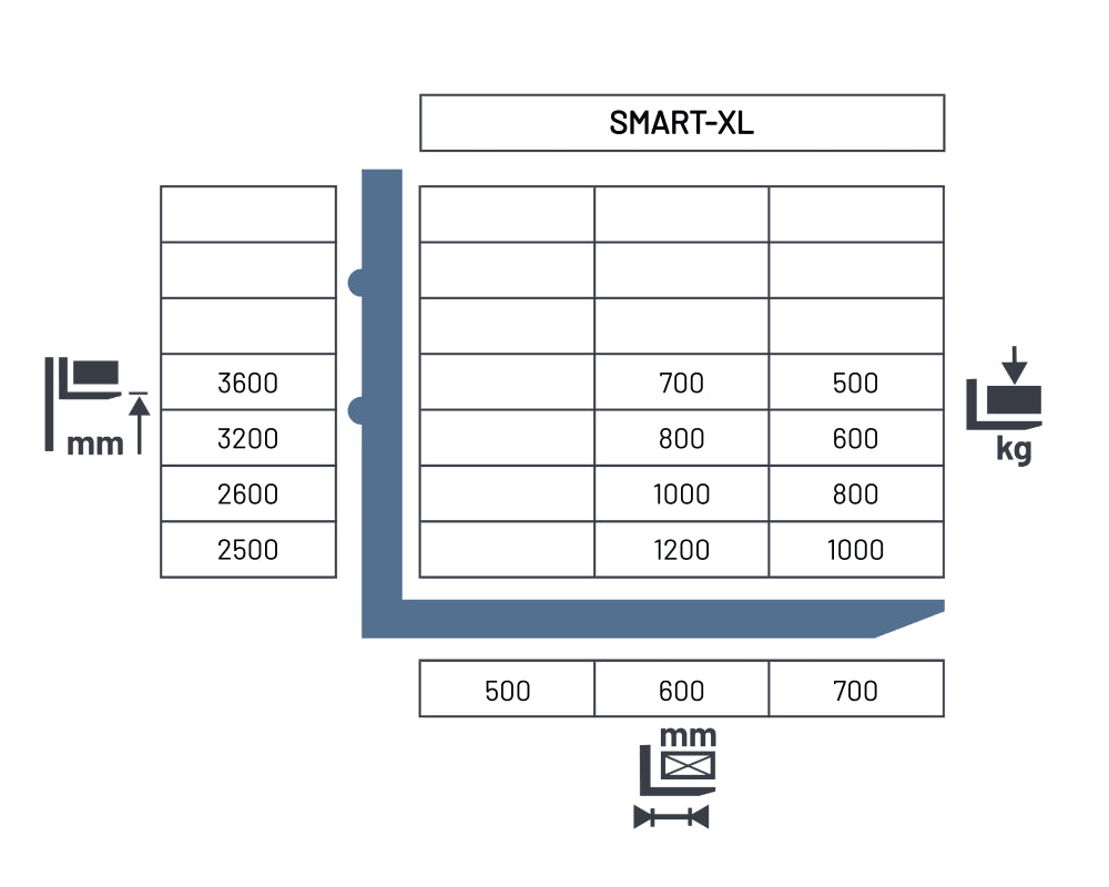 The SMART-XXL is a compact electric pallet stacker based on the proven SMART-XL model – but with one crucial addition: full free lift. This special feature allows the load to be lifted without changing the overall height of the mast – a clear advantage in low ceilings or tight warehouse spaces. Like its sister model, the SMART-XXL also impresses with maintenance-free lithium-ion technology and exceptional user-friendliness.