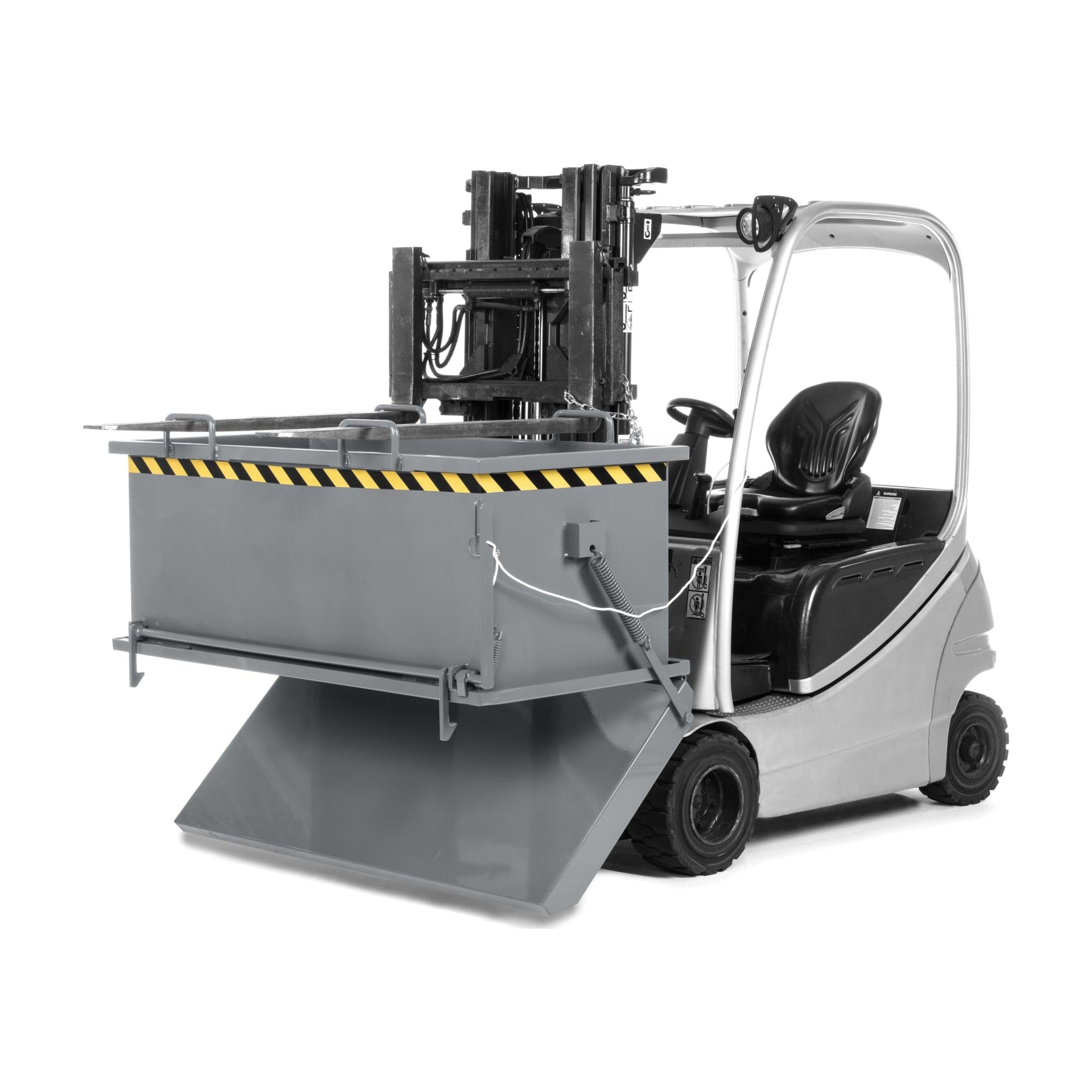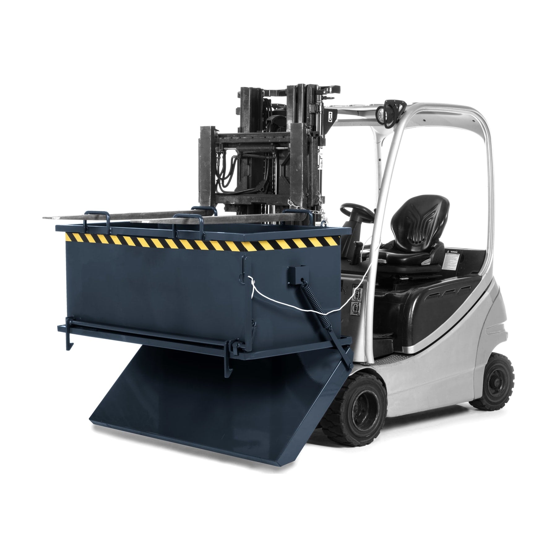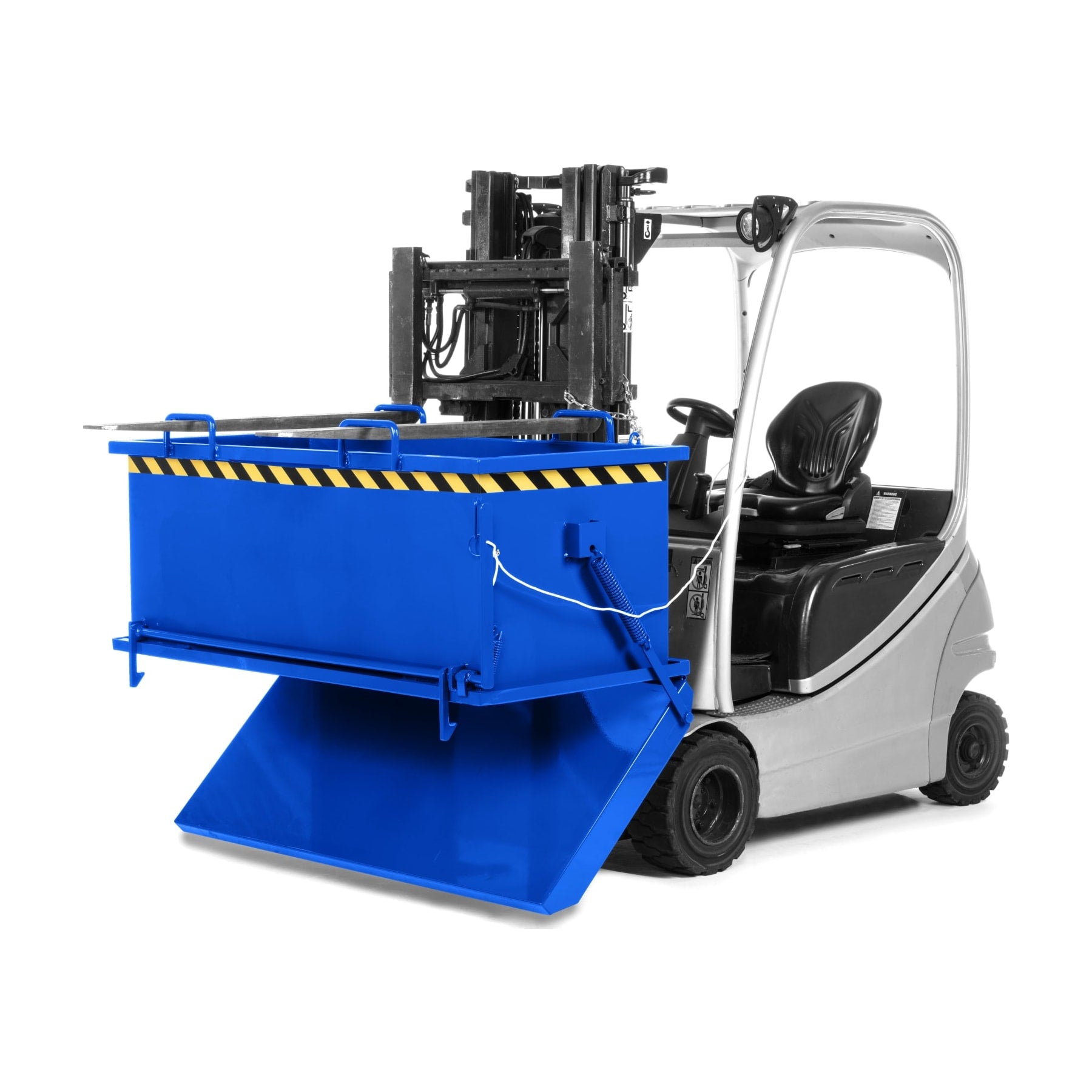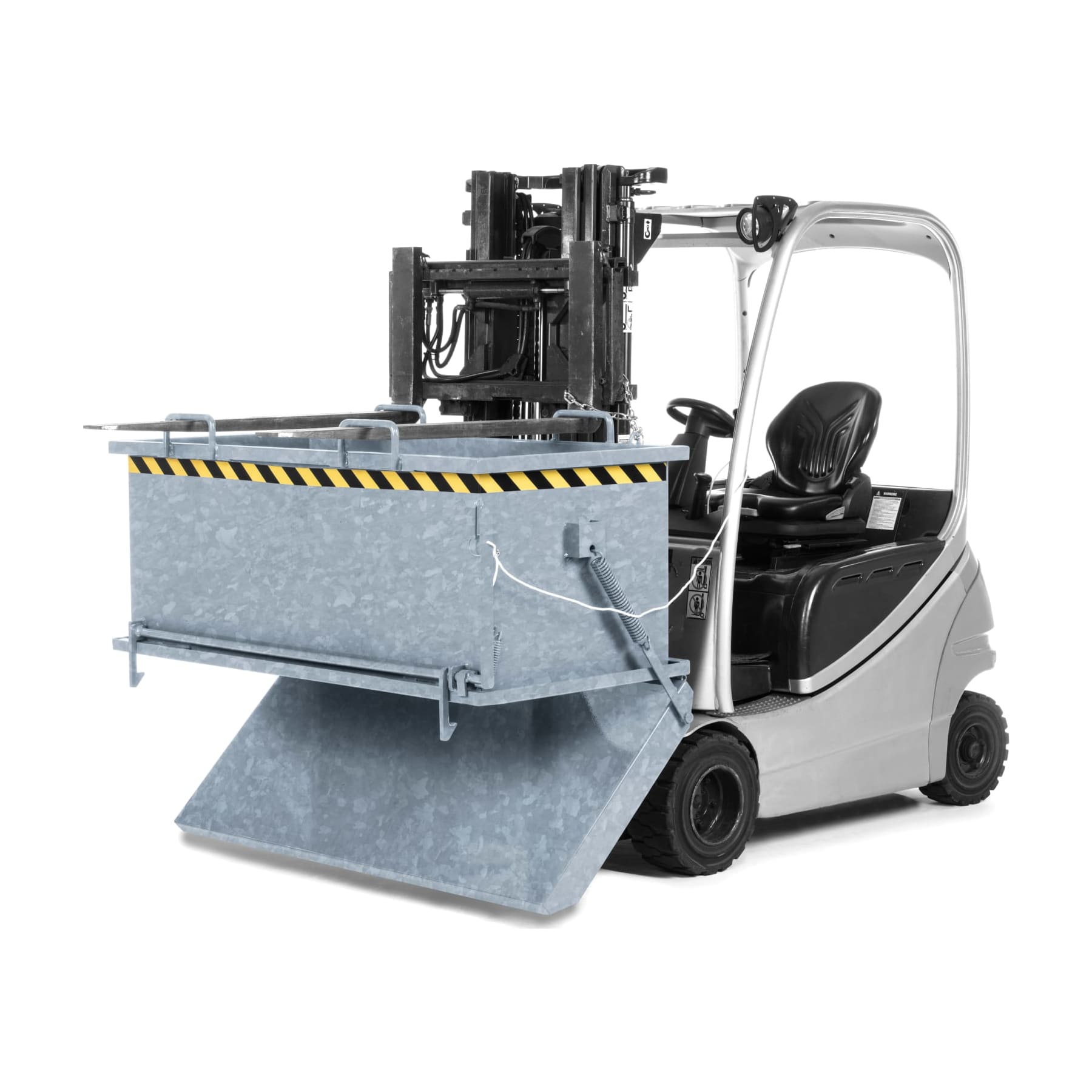 The folding bottom container type RKB from R+R is the right forklift attachment when it comes to transporting or storing bulk goods such as metal, glass, mulch or construction rubble.