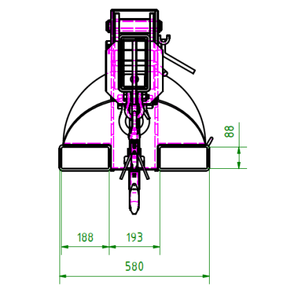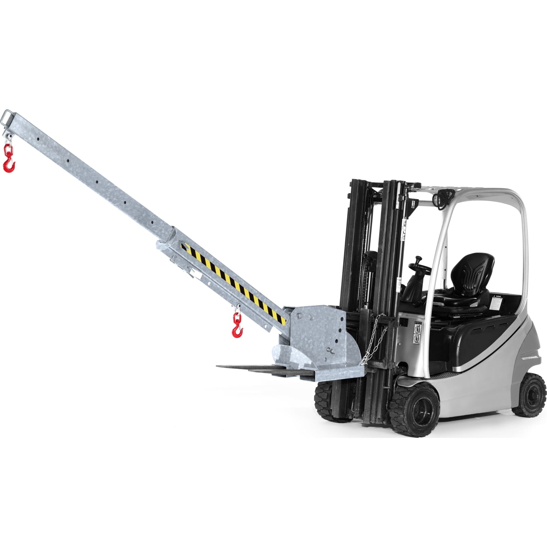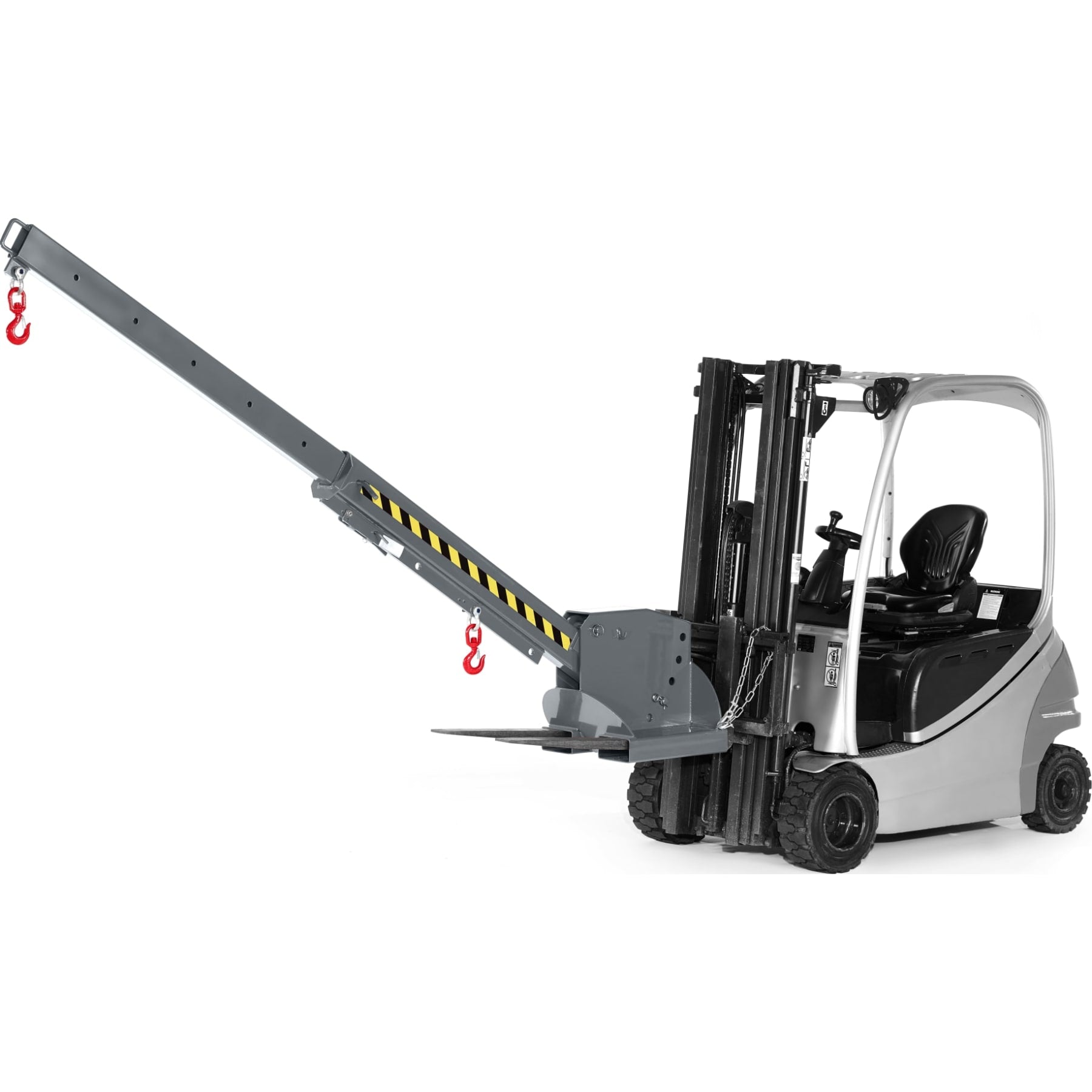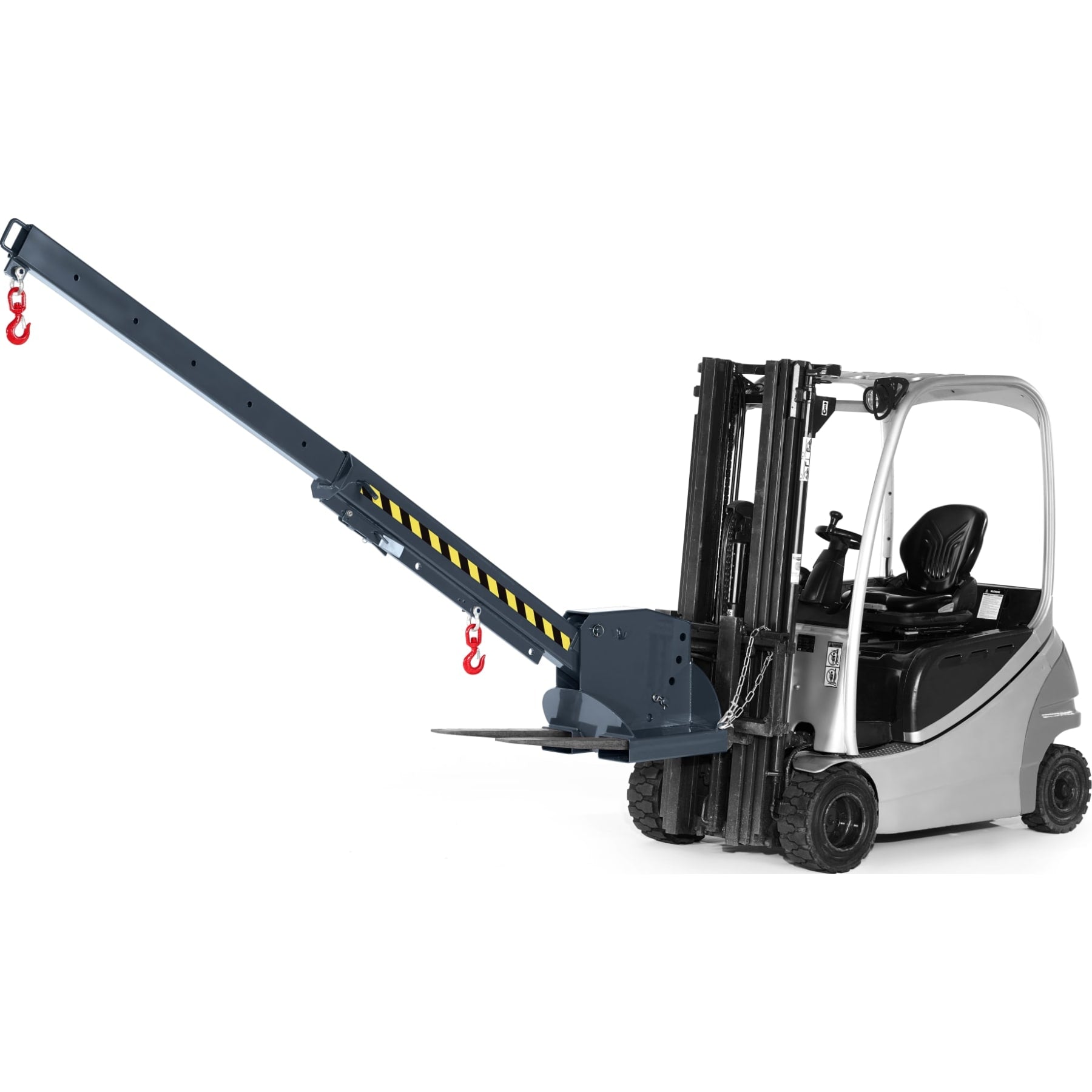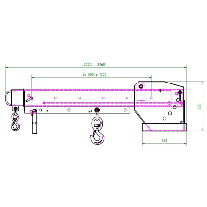 The RKT type crane arm is an attachment that significantly extends the reach of a forklift truck. Heights are also no longer a problem when grasping the load thanks to the 5-way height adjustment. An additional locking pin ensures safety.