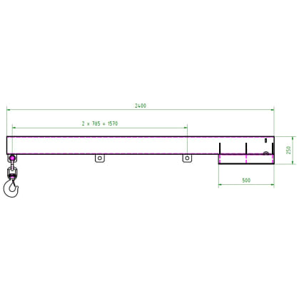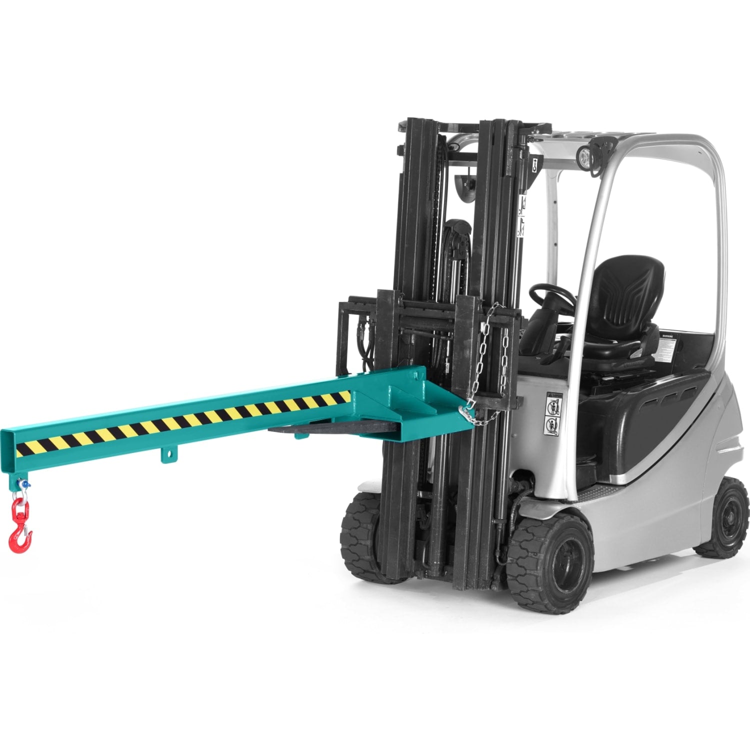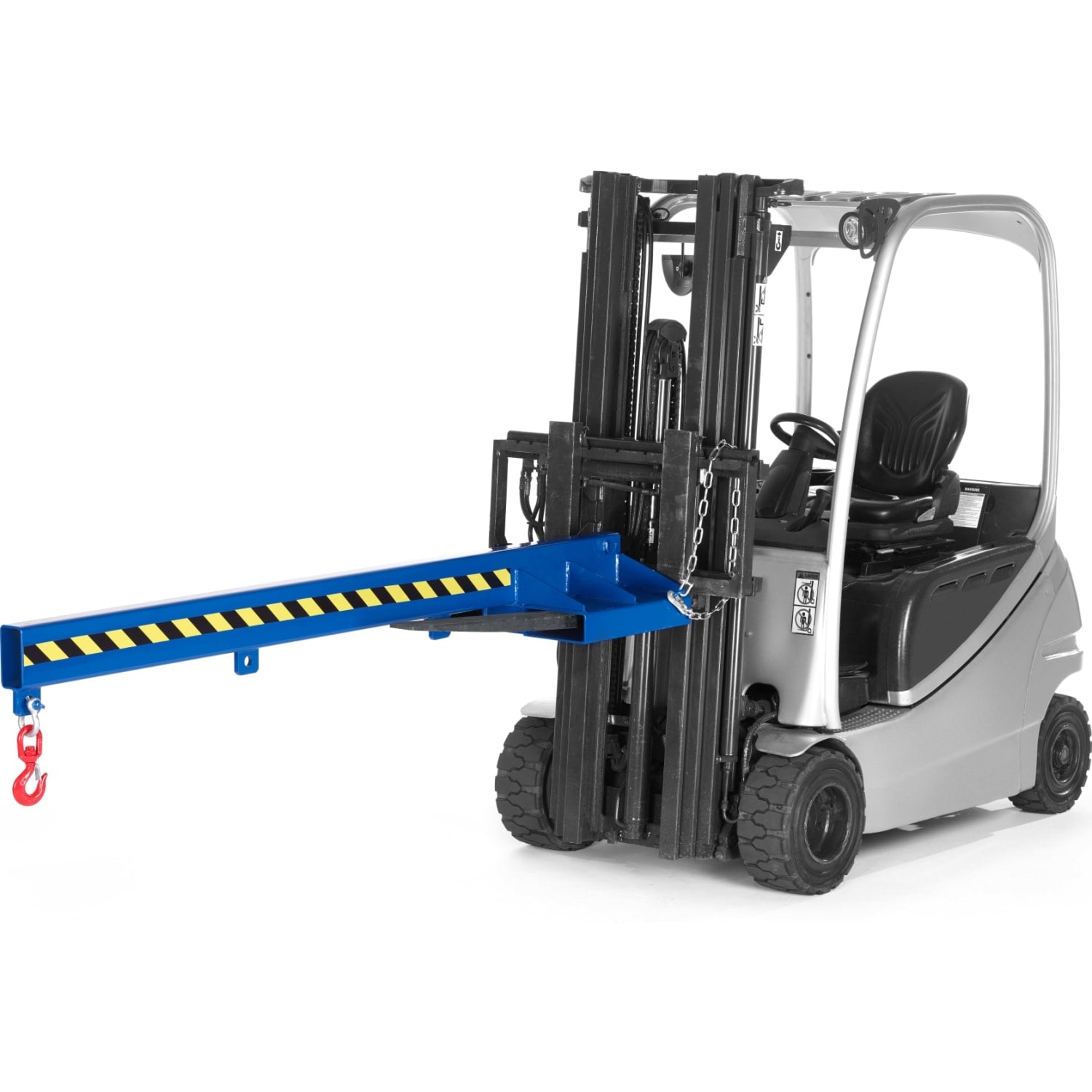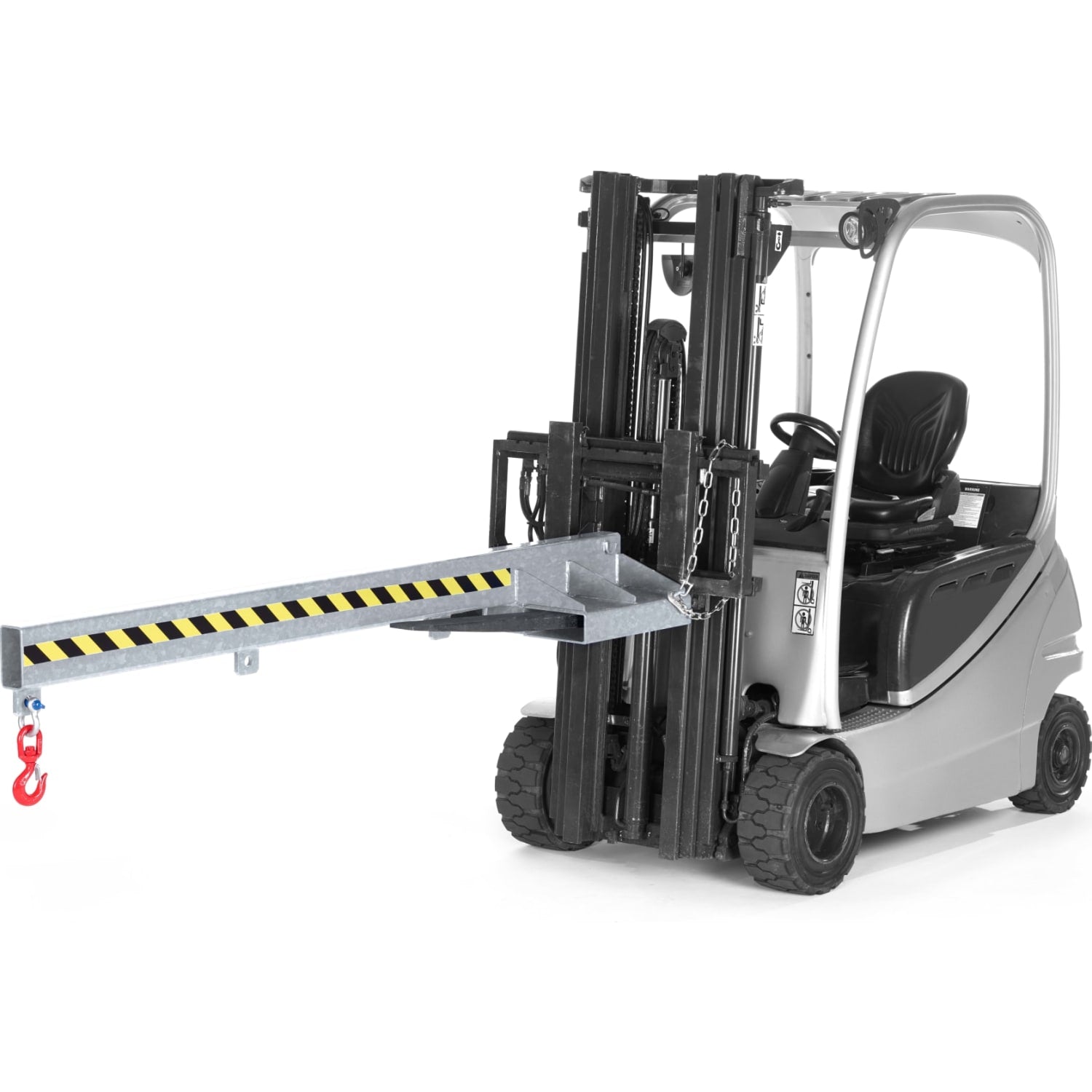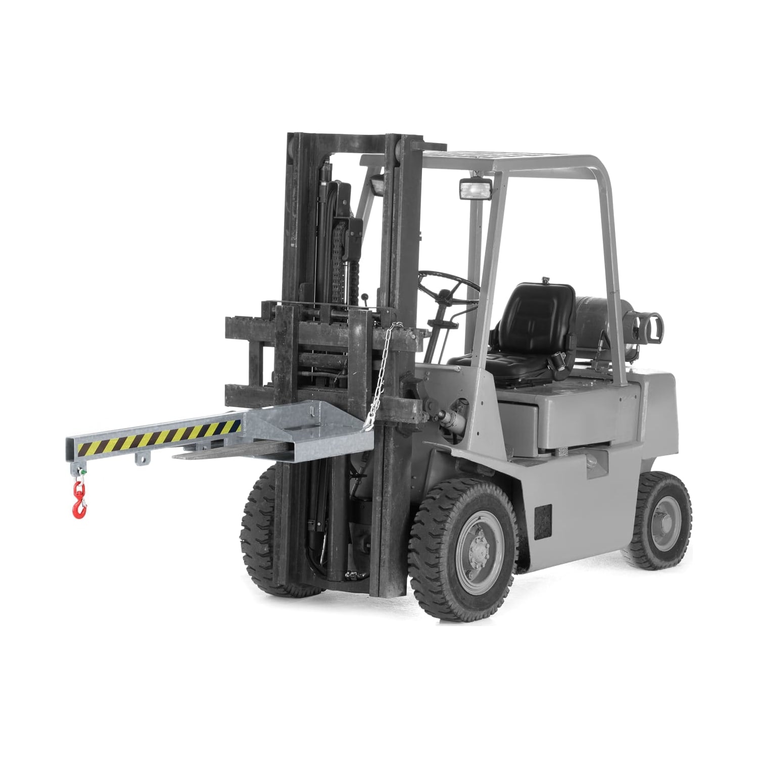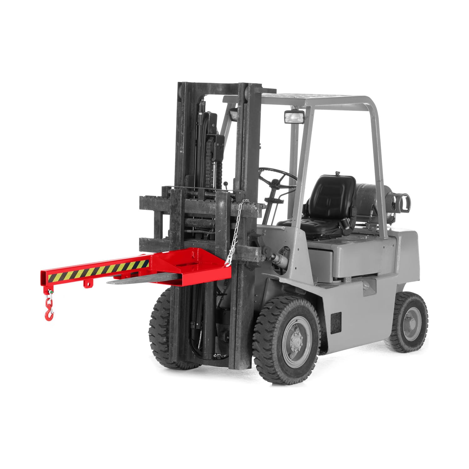 The forklift load arm from R+R increases the reach of a forklift and thus enables large loads to be moved easily. The robust steel construction reaches a maximum length of up to 2400 mm, depending on the model.