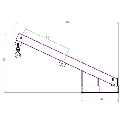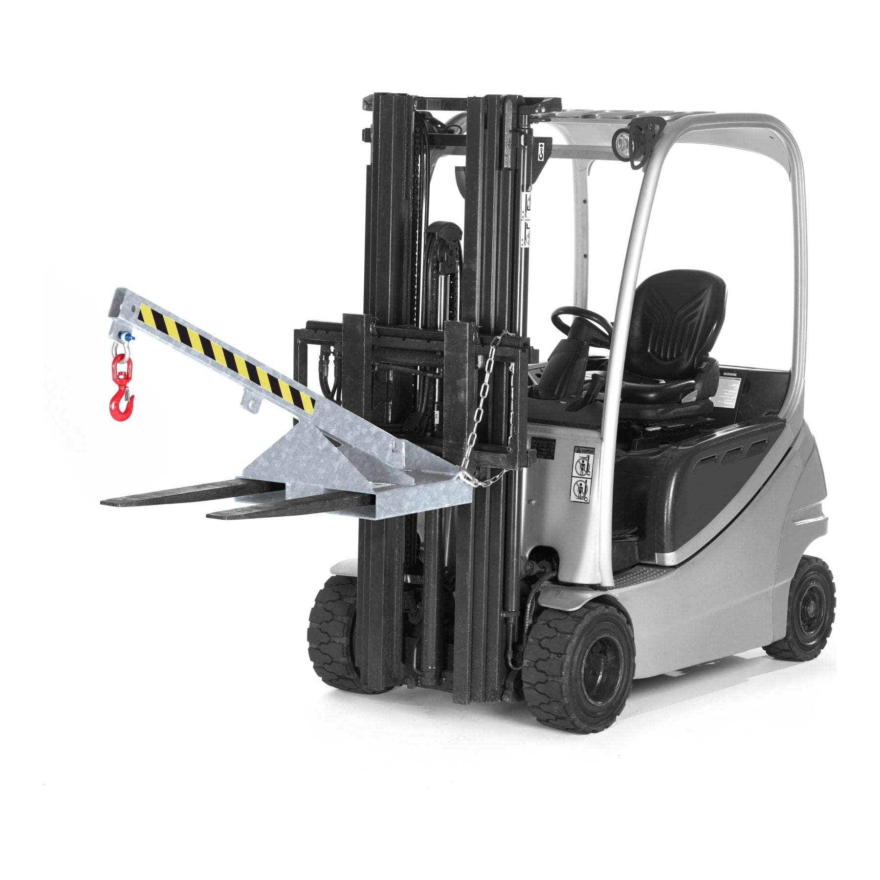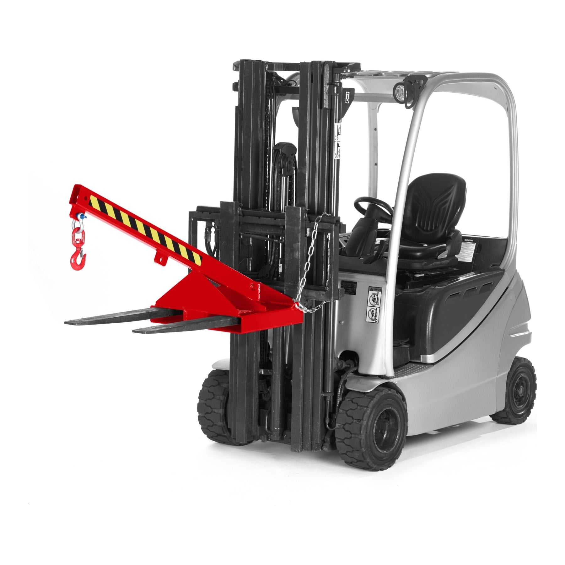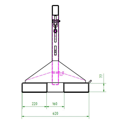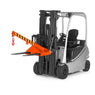 This tilting load arm from R+R is an attachment that increases the reach of a forklift. It has a tilt of 25° and can be extended 5 times. An additional chain lock prevents slipping from the forks. A big advantage of this product is the ability to pick up loads from above.