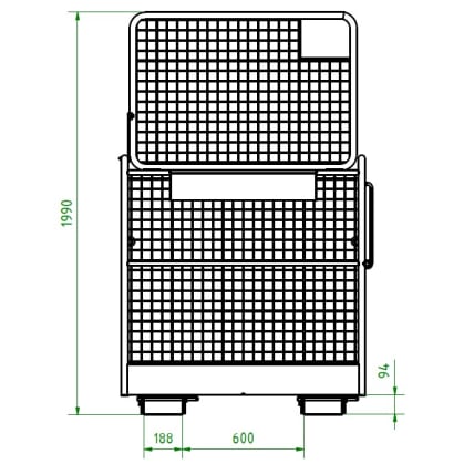 The RAK-Eco work basket for forklifts enables safe working at heights for a maximum of 2 people with a load capacity of up to 300 kg. Ideal for applications such as building maintenance, machine operation or inventory. With a weight of 90 kg, it can also be easily moved independently of the forklift.