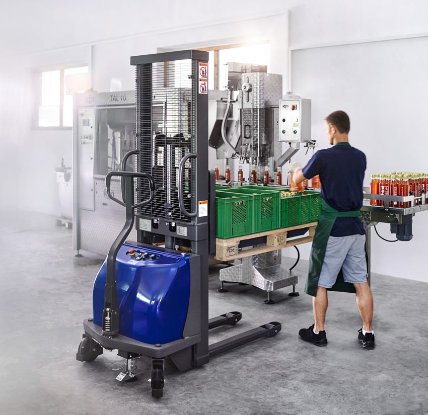 The semi-electric high lift truck is a cost-effective way to carry out occasional stacking operations up to a lifting height of 1,600 mm as well as loading and unloading commercial vehicles in a way that saves effort. With a load capacity of 1,500 kg, it can also be used as an ideal work platform to make goods available at an ergonomically adjusted height in everyday production.