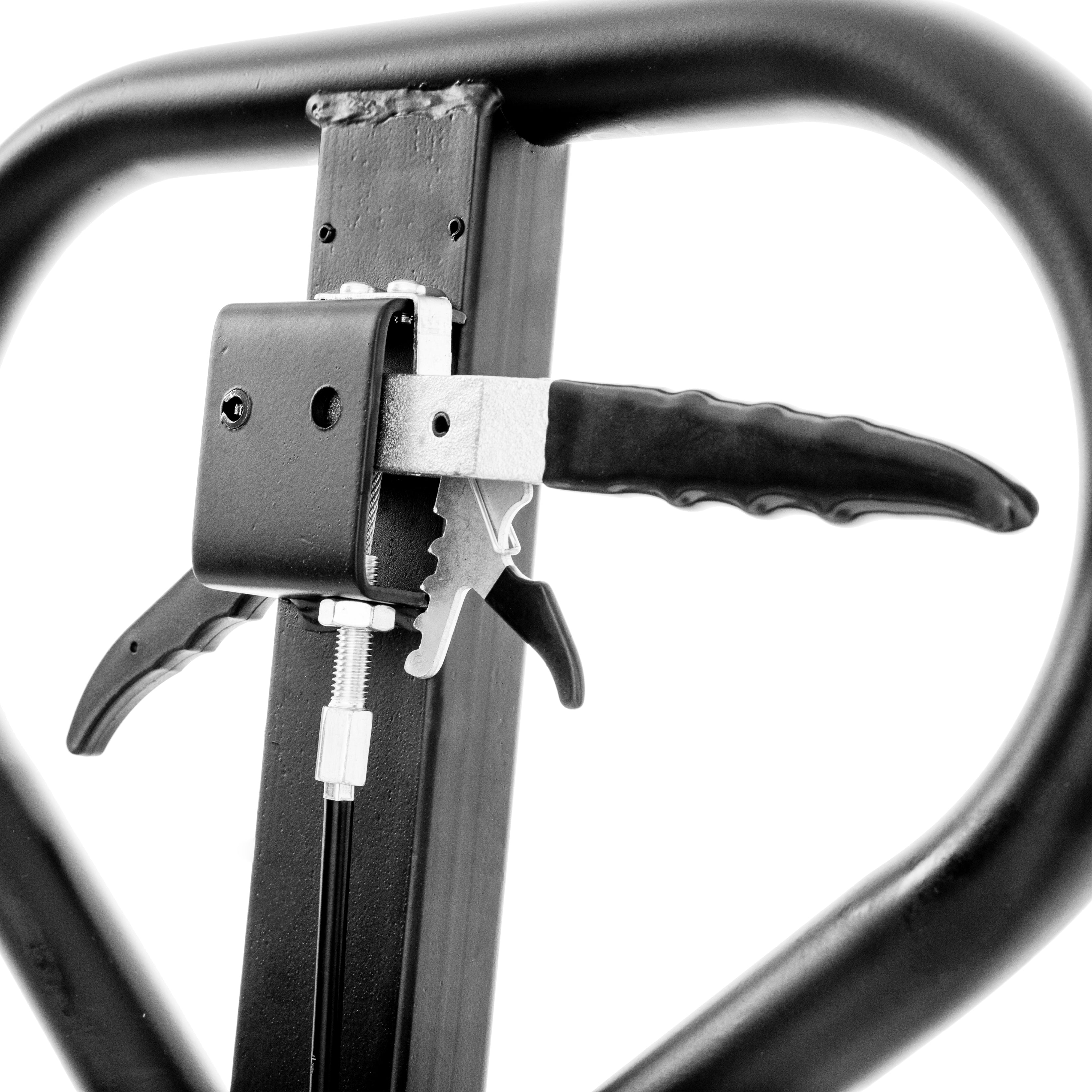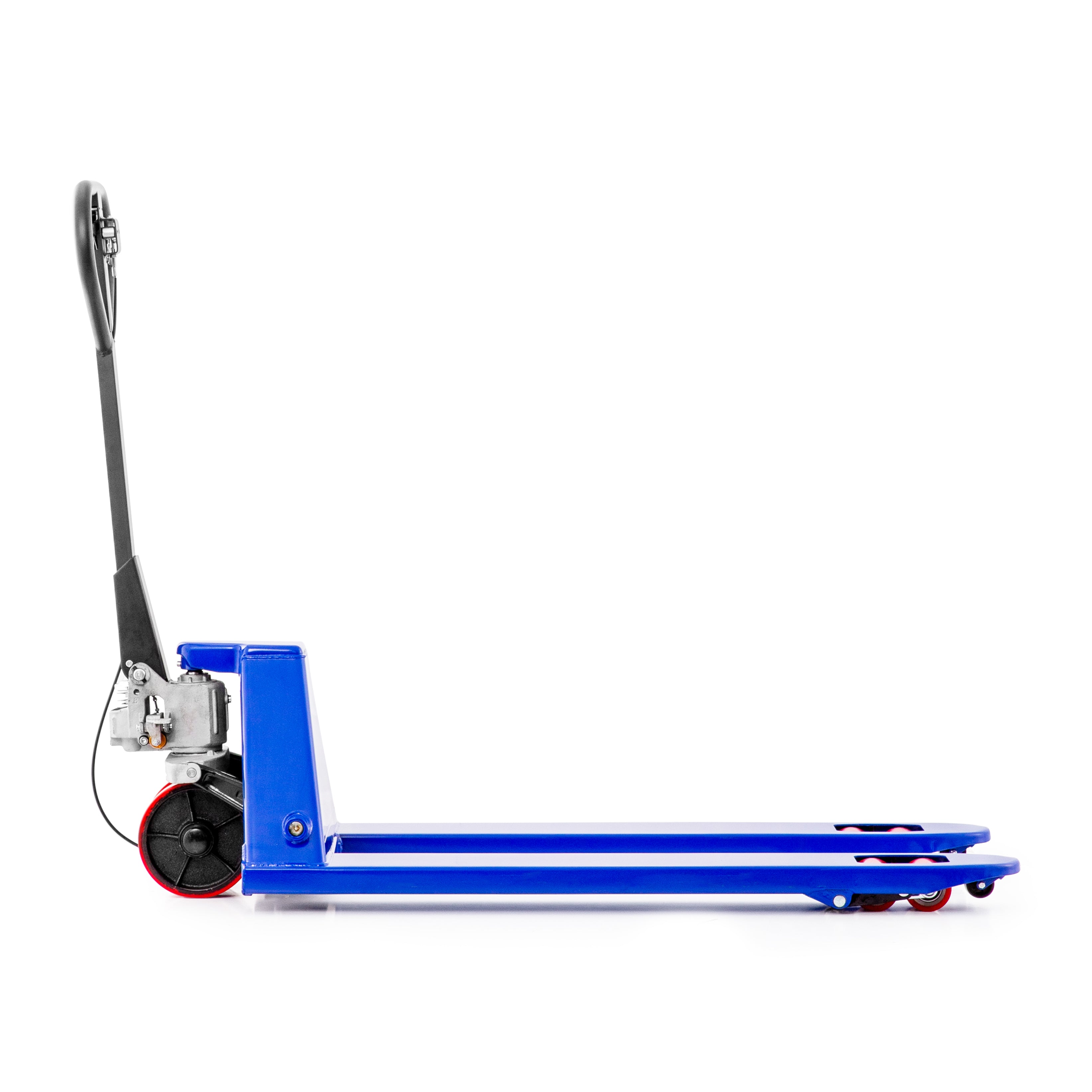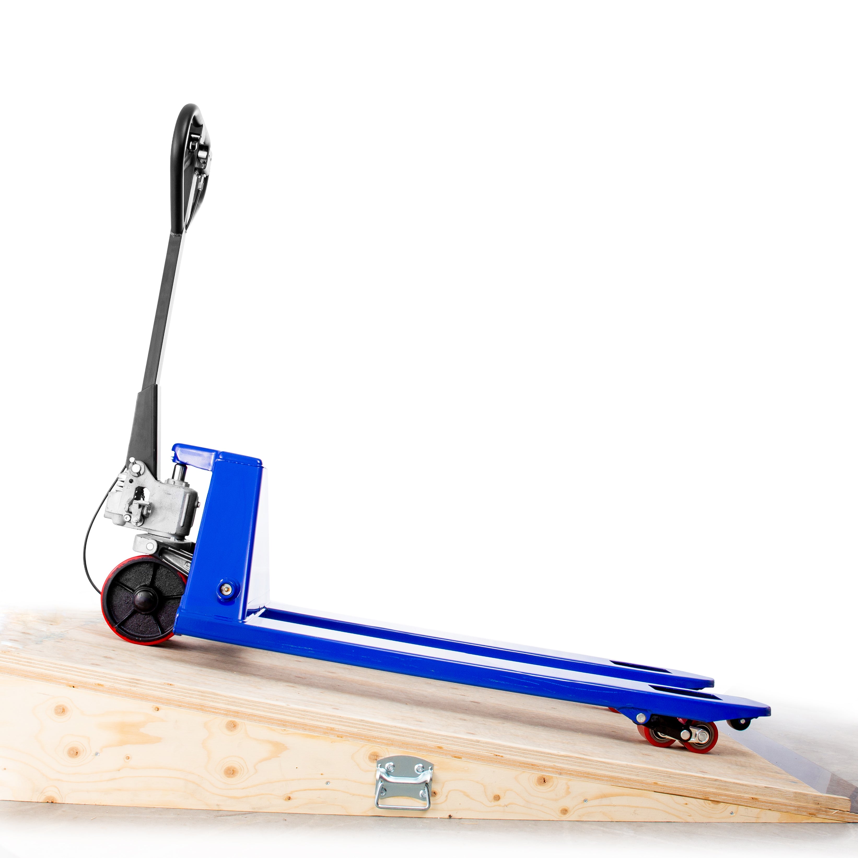 The pallet truck with brake has an integrated drum brake, which is used as a driving or parking brake via the operating lever. This allows you to use it safely on slopes and ramps.
