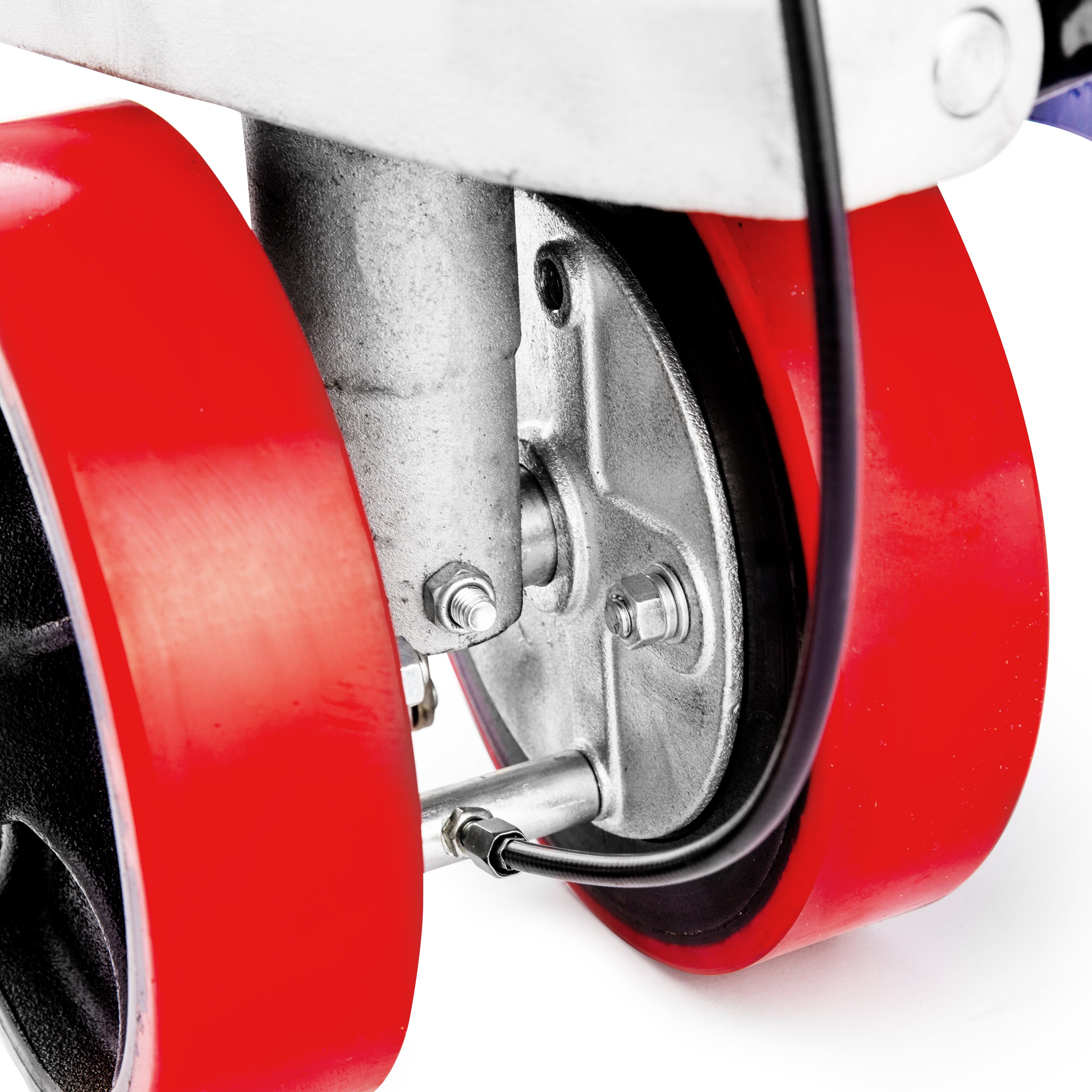 The corrosion- resistant polyurethane (PU) tires are durable and abrasion-resistant