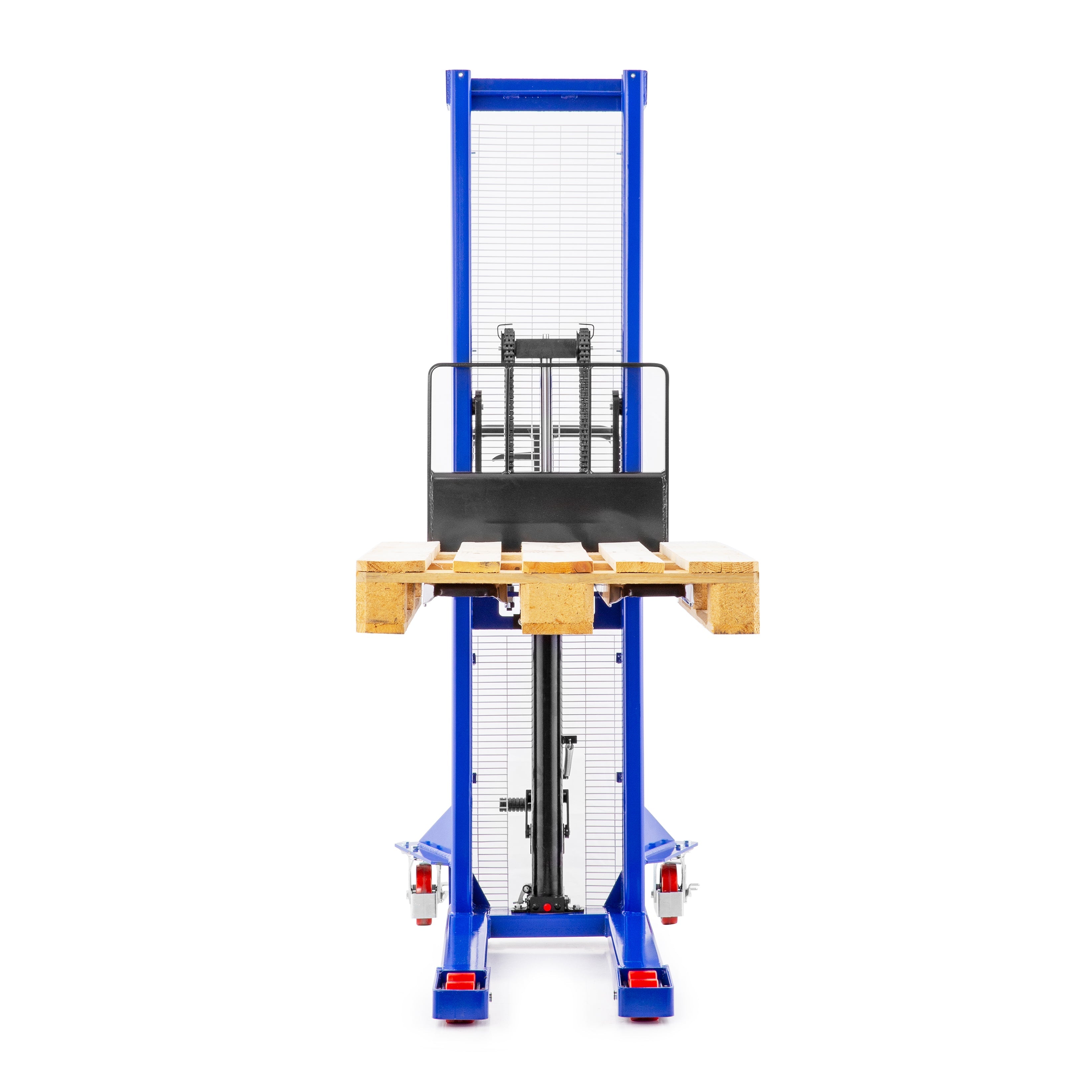 The LIFT-M is a manual high lift truck with a lifting height of 1.6 m: ideal for stacking Euro pallets or loading and unloading shelving systems and trucks. Compact in design, it shows its strengths in small and medium-sized companies as well as in wholesale and retail trade.