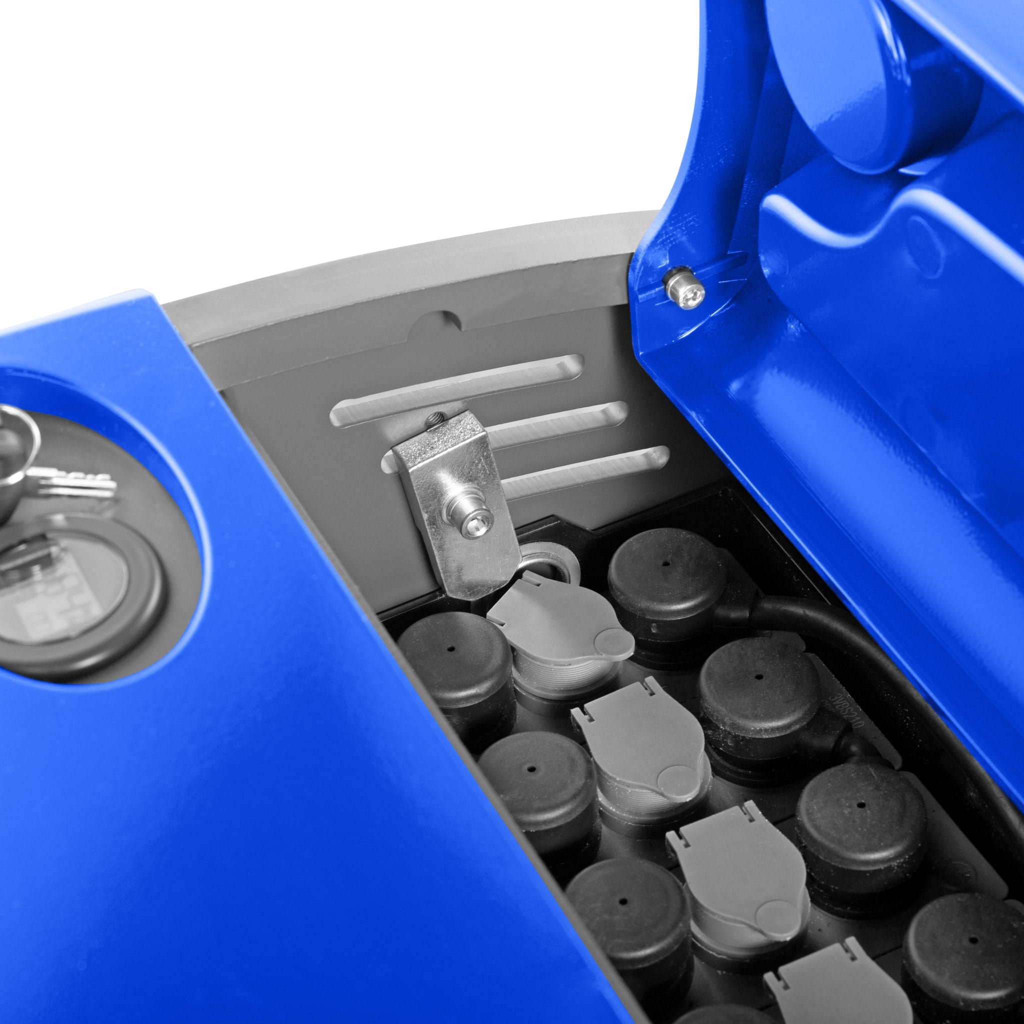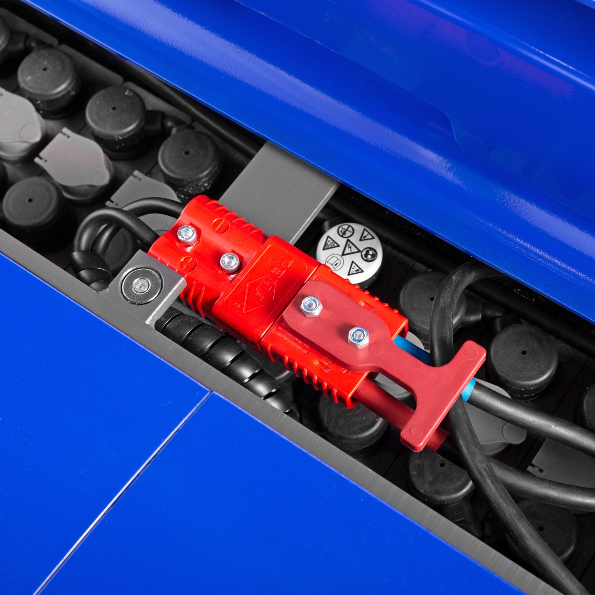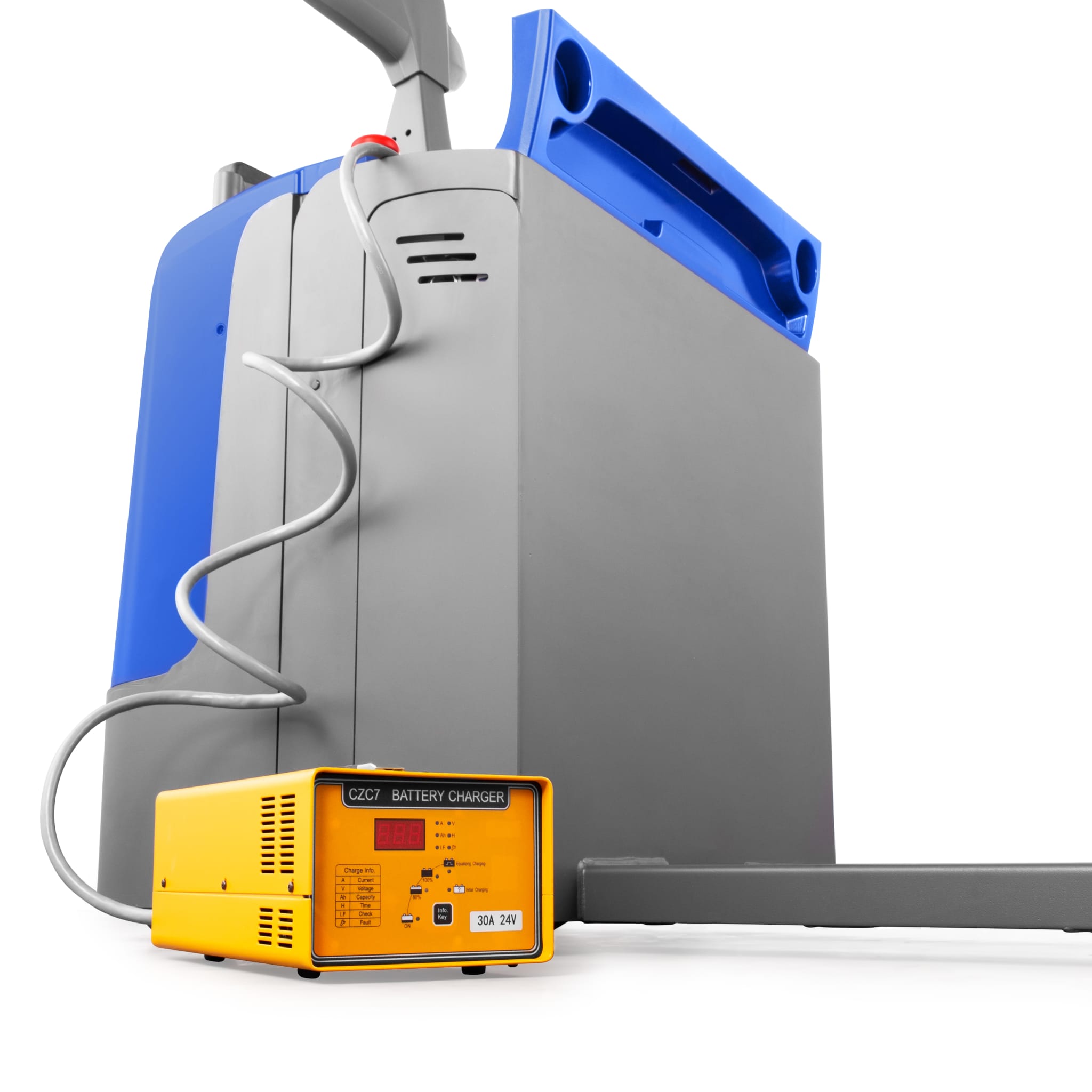 Powerful lead-acid battery with a capacity of 210 Ah can be easily charged by connecting the integrated charger to a 230V socket