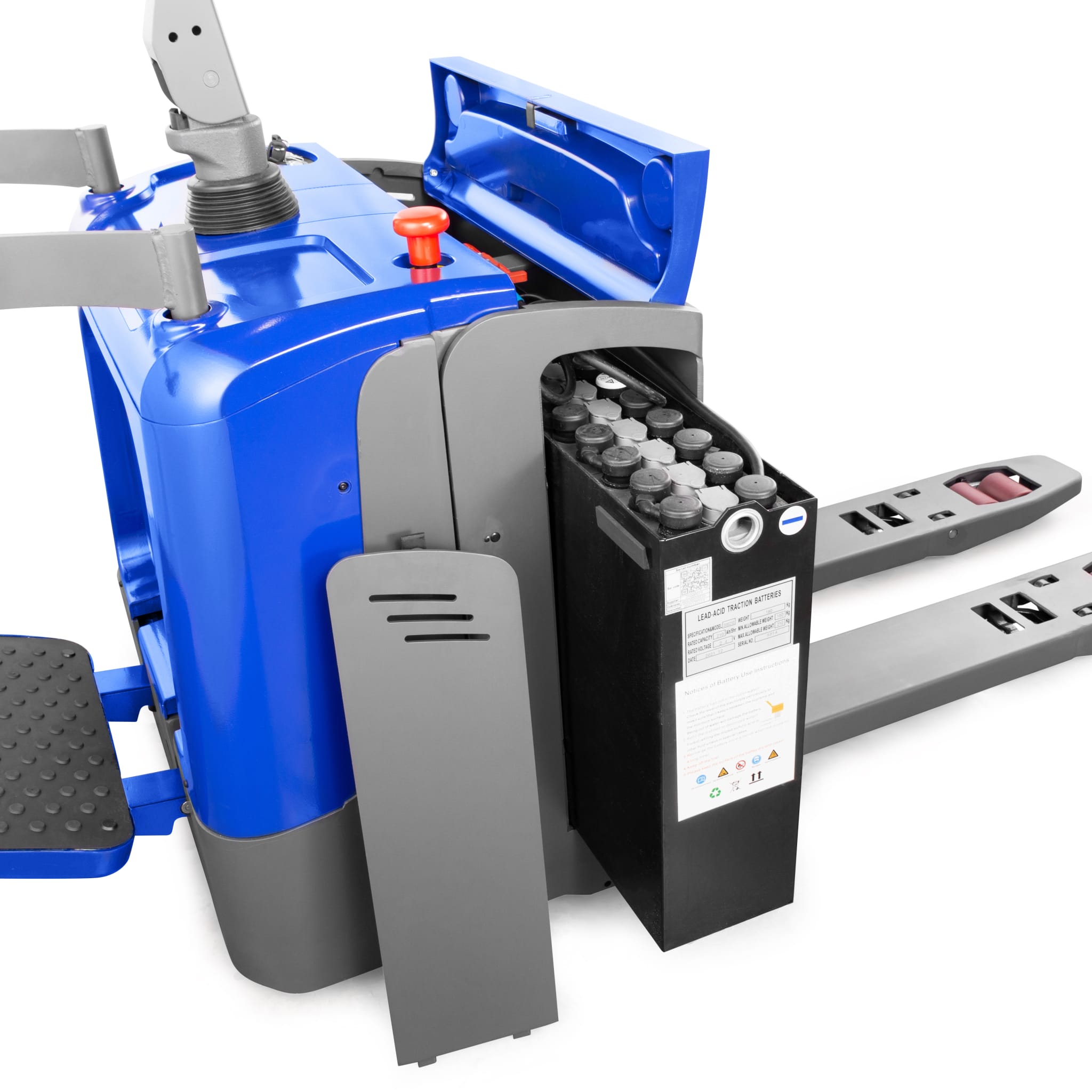 All functions, such as driving, lifting and lowering the forks, are conveniently performed via the multifunctional tiller head