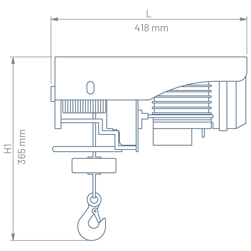 This electric cable hoist is suited for lifting loads, whether in the workshop, in the house or in the garden. It doesnt matter whether you want to lift building materials or car body parts, the electric cable winch is multifunctional and can be used in many ways. The weight of the unit is a light 10 kg. The assembly is quick and uncomplicated via the supplied mounting brackets. The powerful motor with 500 W power is equipped with overheating protection to prevent damage to the motor. The safety cut-out on the device ensures a shutdown as soon as the rope has been completely retracted. In order to operate the winch, it is equipped with a remote control, which is attached to the unit with a cable. There is also an emergency stop switch to stop the unit immediately in dangerous situations. The hoist lifts loads at a speed of 8 m/min (single hook) or 4,0 m/min (double hook). The winch is controlled via a remote control with a cable length of 1,6 m.