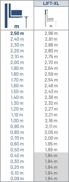 Ist der LIFT maximal beladen, geben die Gabeln circa 3,25 mm (0,3 cm) nach unten nach. Somit wird die maximale Hubhöhe nicht ganz erreicht.