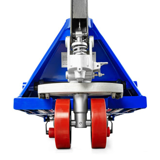Unser Handhubwagen SIX-3500 mit Kapazität bis zu 3,5 Tonnen zeichnet sich durch seine robuste, verwindungssteife Stahlkonstruktion aus und ist speziell für den täglichen, intensiven Einsatz in Gewerbe und Industrie konzipiert. Seine hochfesten Komponenten gewährleisten eine hohe Belastbarkeit und Langlebigkeit, ideal für anspruchsvollen Palettentransport.