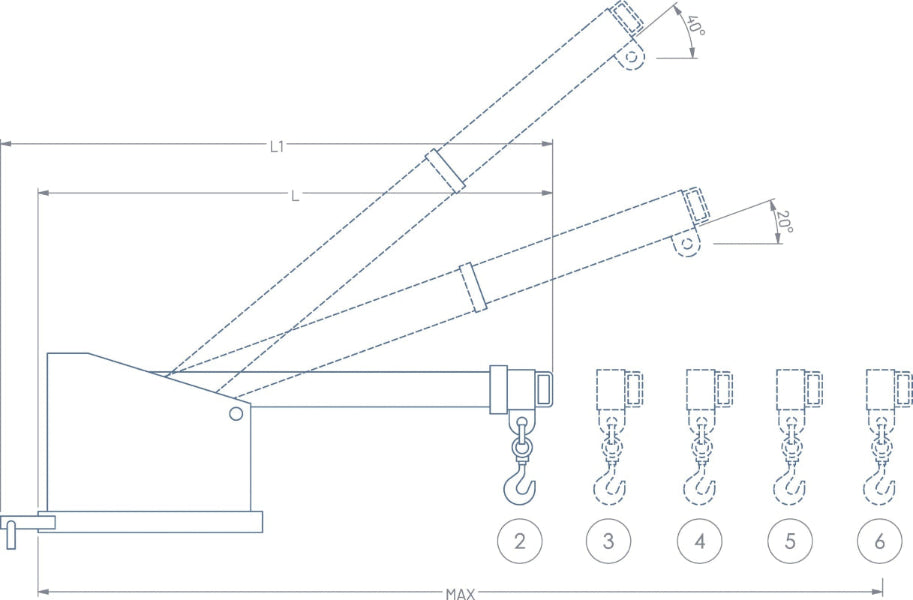 Verwandelt Ihren Stapler in einen Kran: 3-fach höhenverstellbar und 6-fach ausziehbar.