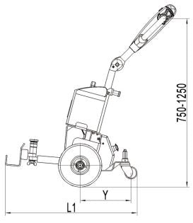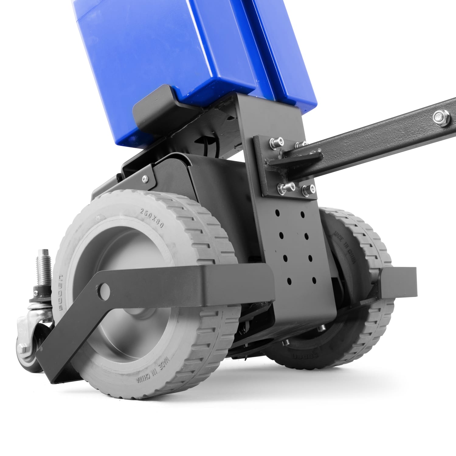 • Antrieb: Starker Fahrmotor, der das Gerät stufenlos und geräuscharm auf maximal 4,5 km/h beschleunigt (unbeladen)