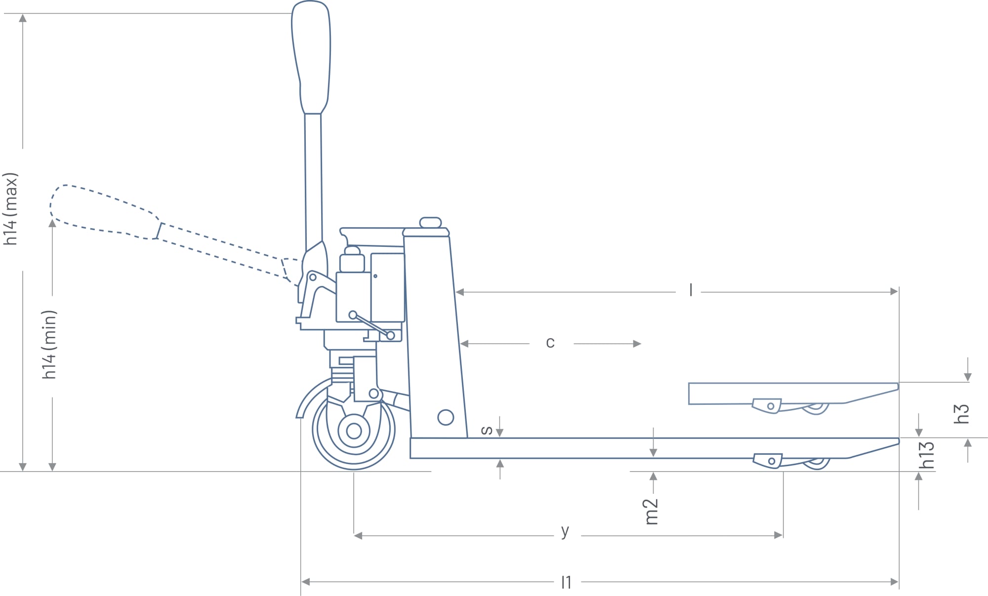 • Steigfähigkeit: Vollbeladen kann der EP Hubwagen Rampen-Steigungen von bis zu 4% problemlos überwinden