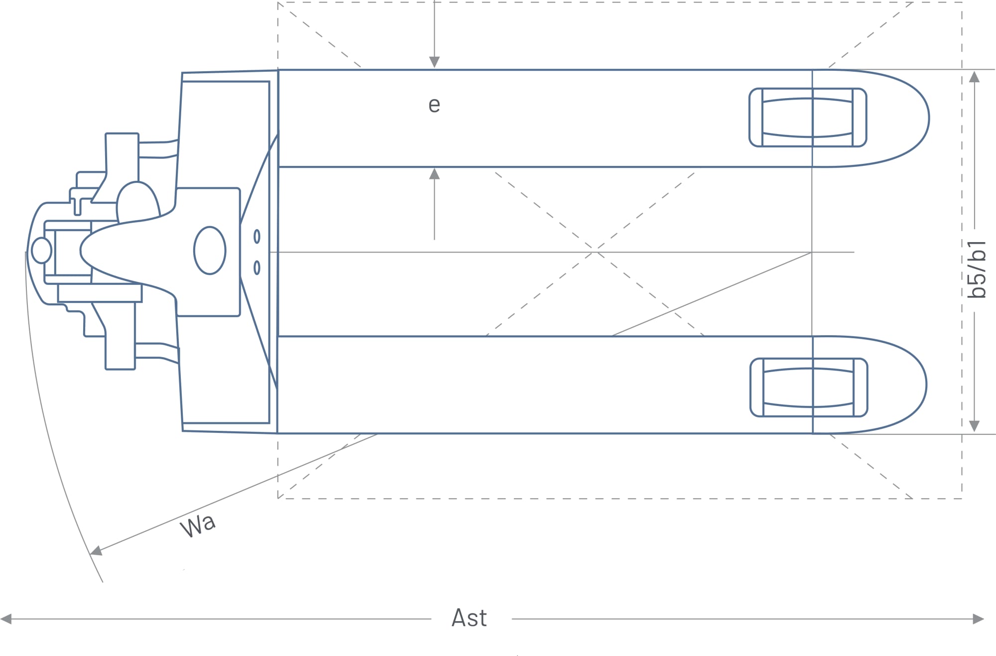 • Wenderadius: Mit nur 1.360 mm für den flexiblen Einsatz an schmalen Stellen, wie Regalgängen, Lkw-Ladeflächen und Containern
