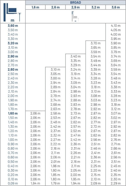 - Hubhöhe: Wählen Sie zwischen 1,6 m bis 3,6 m