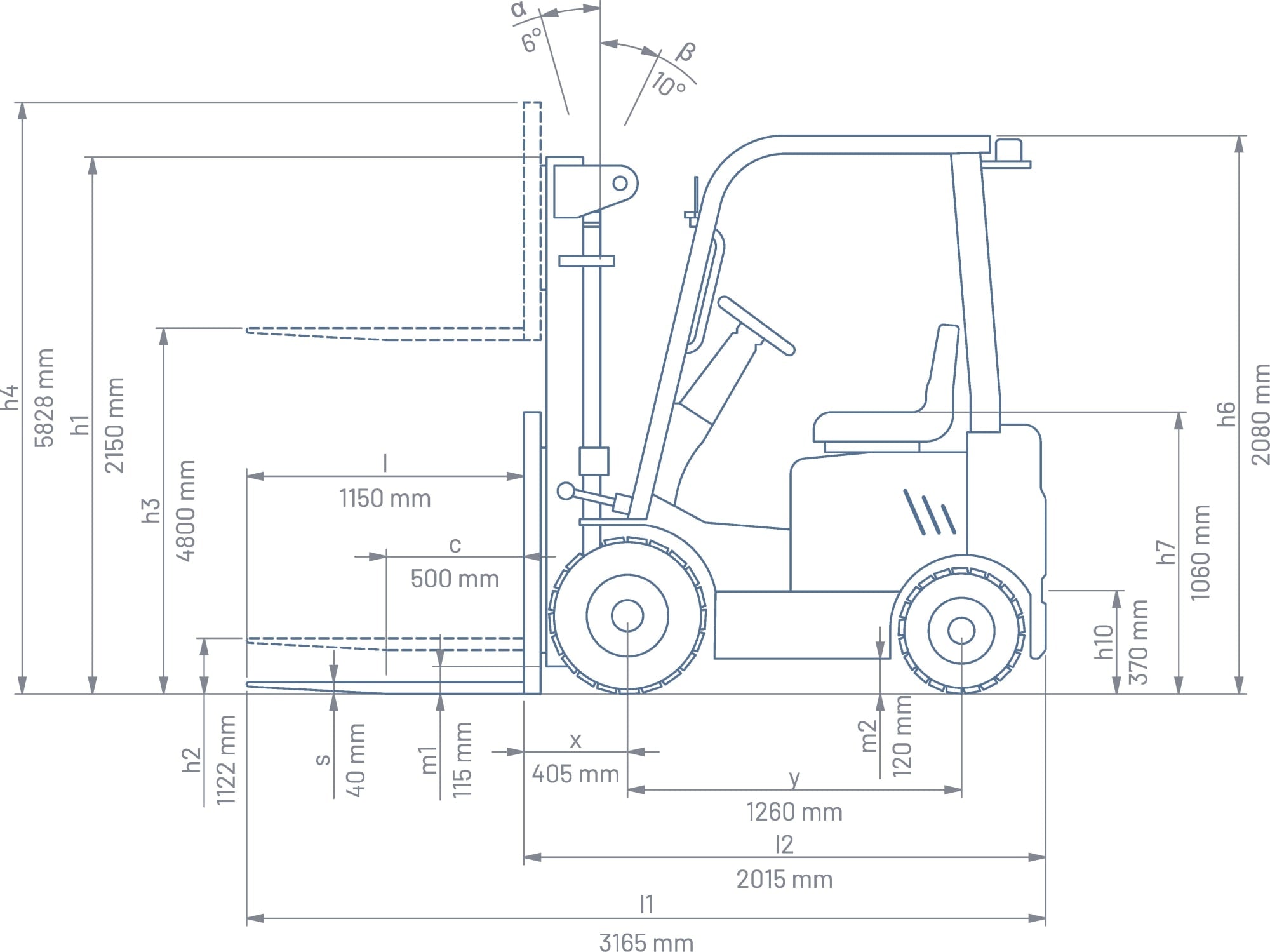 Bodenfreiheit bei abgesenkten Gabeln115 mmm2