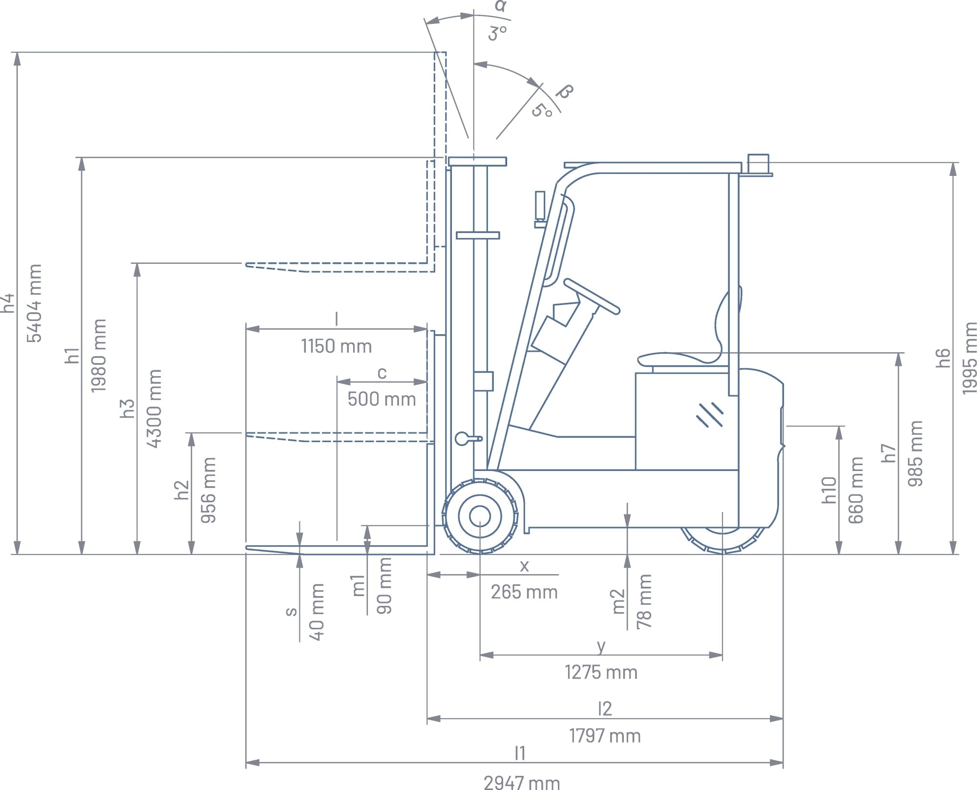 Bodenfreiheit bei abgesenkten Gabeln90 mmm2