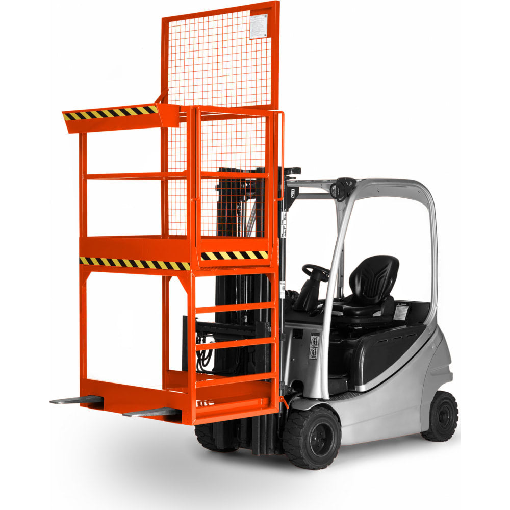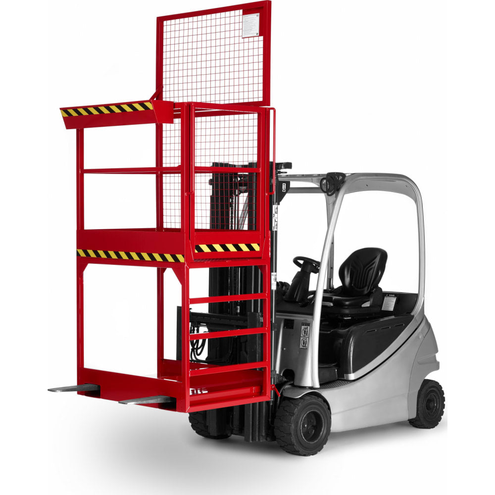 Der Arbeitskorb eignet sich besonders für Reparatur- und Wartungsarbeiten an Gebäuden, Maschinenanlagen, Decken und Hochregalen mit besonderer Höhe. Die Arbeitsbühne entspricht den geltenden Unfallverhütungsvorschriften (UVV). Die extrahohe Variante hat einen 1000 mm hohen Unterbau mit Leiter.