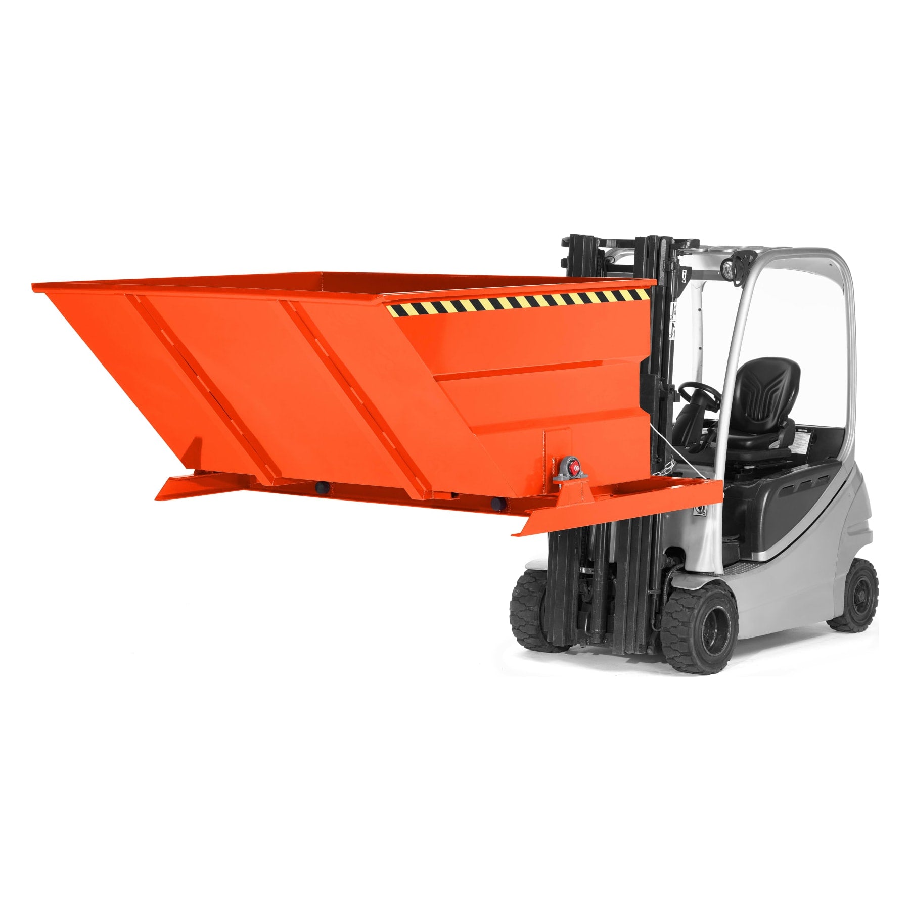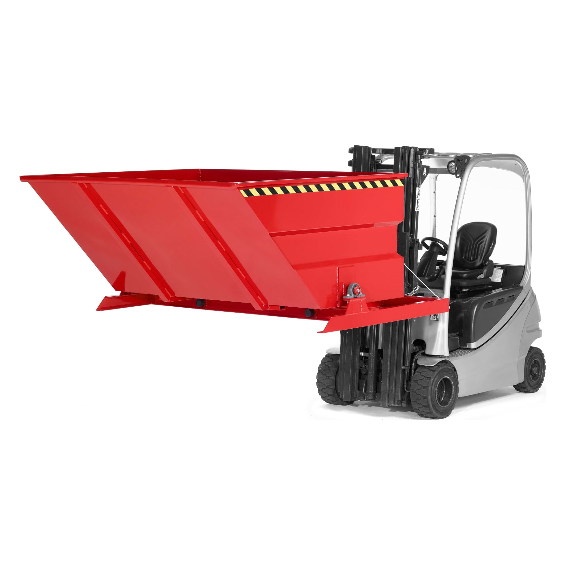 Der Großraumkipper des Typs RGK zeichnet sich durch sein hohes Volumen aus. Die Entleerung gestaltet sich sehr einfach und körperschonend durch einen Seilzug, der sich vom Staplersitz aus bedienen lässt.