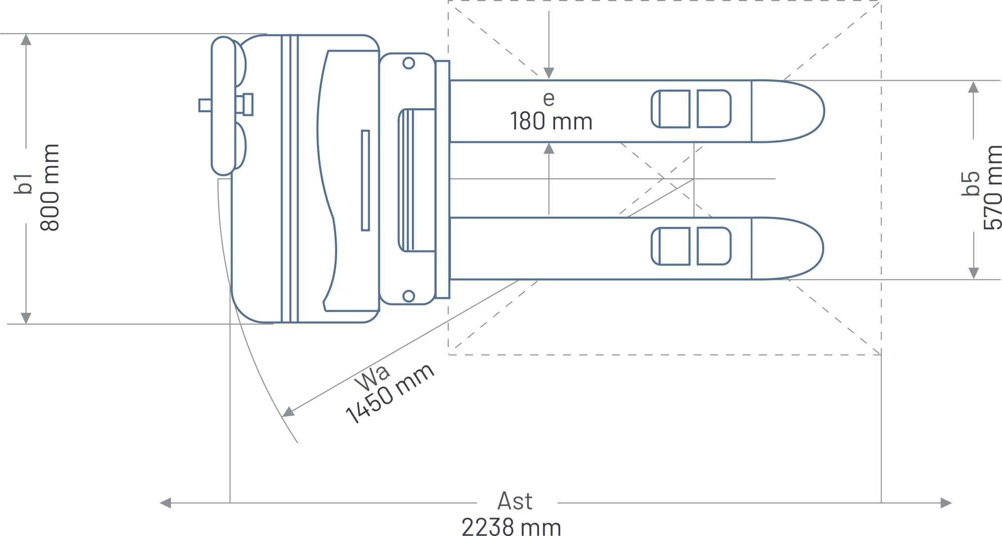 Arbeitsgang-Breite mit Europaletten2238 mmAst
