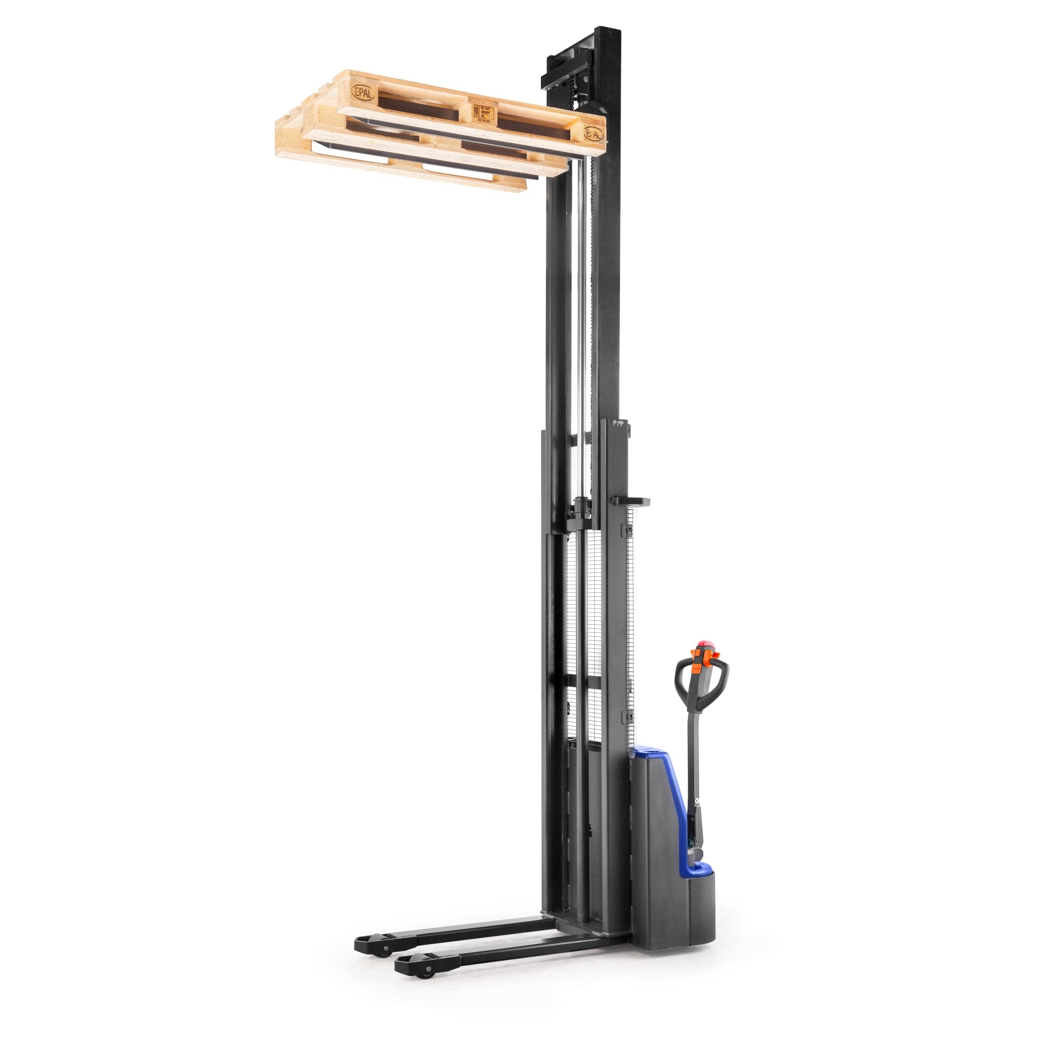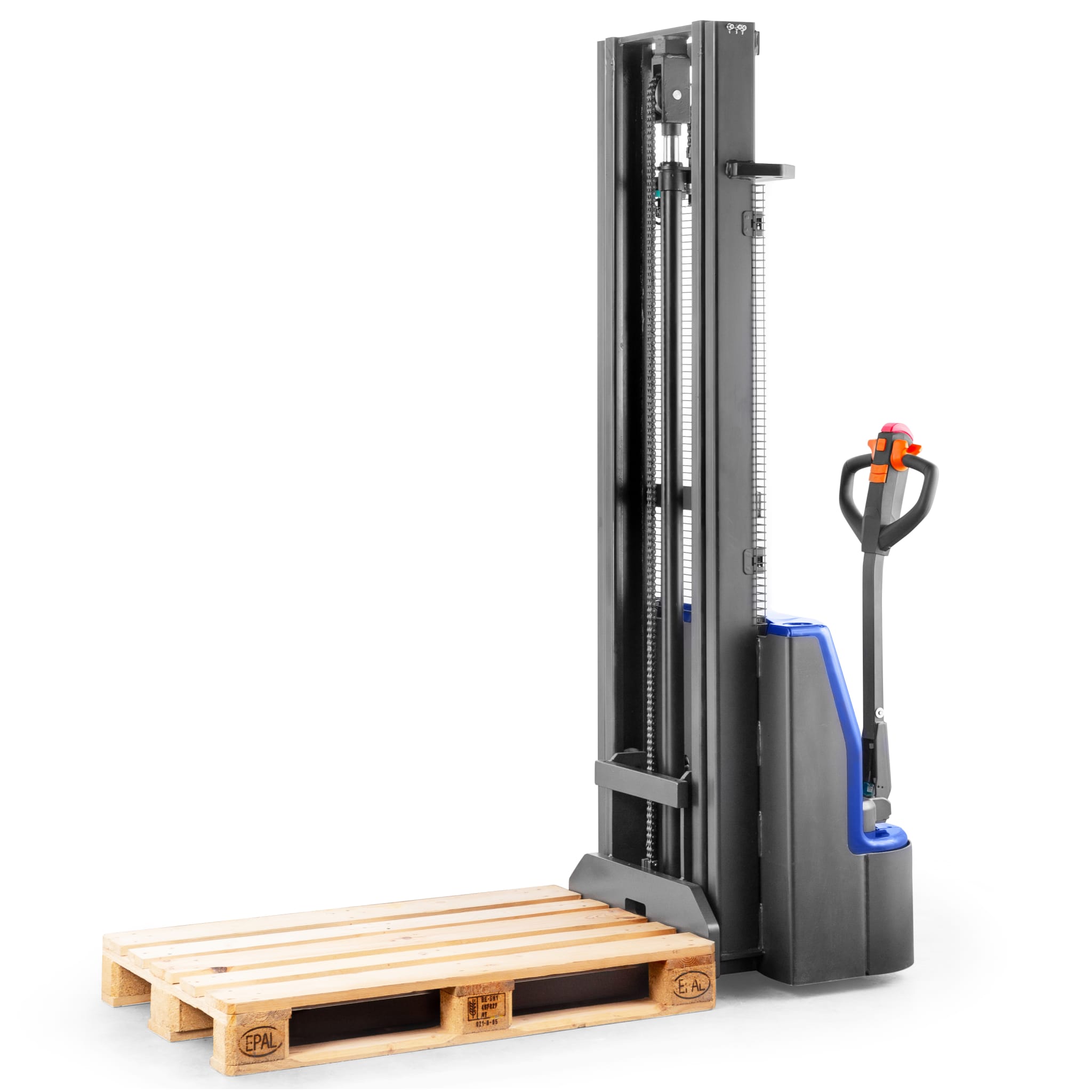 Vollelektrisches Heben und Fahren - einfach die entsprechenden Hebel am Polyamid-Griff tätigen.